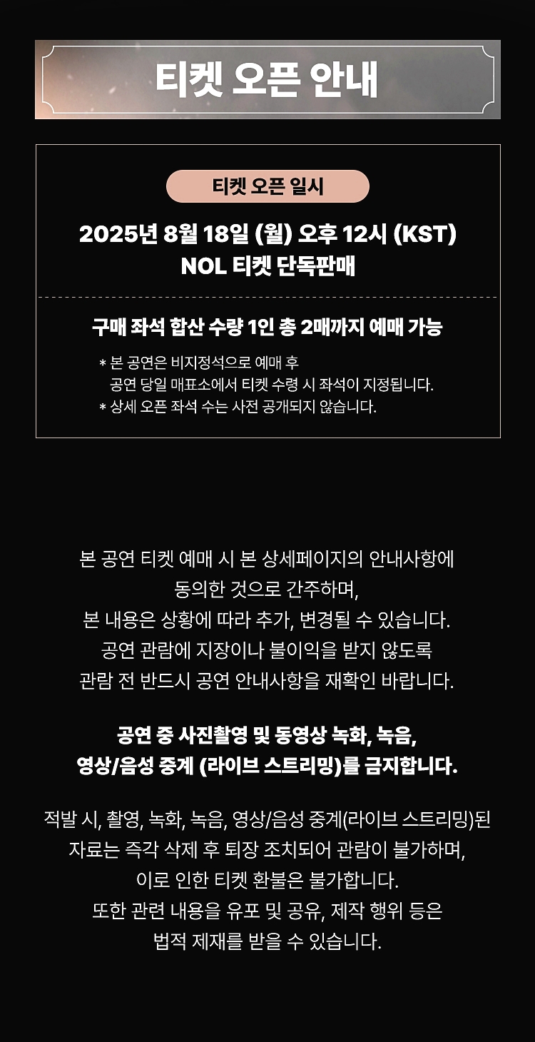 - 1차 예매 오픈: 2025년 8월 18일(월) 낮 12시