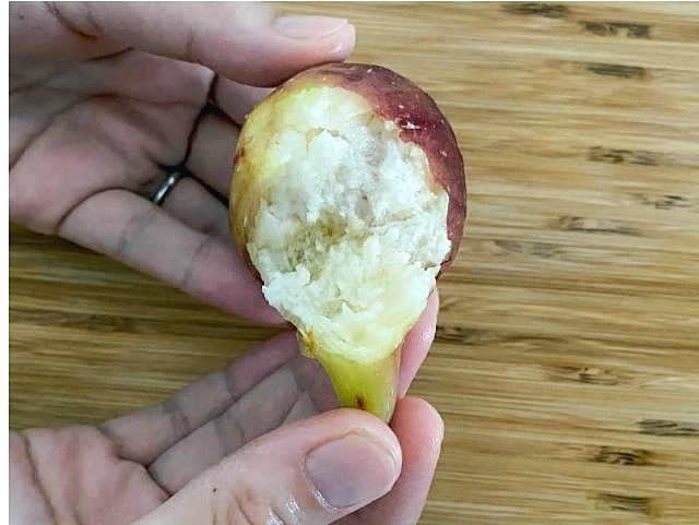 방법은 무화과 줄기 부분을 ‘톡’ 꺾은 후, 아래로 잡아당기면 바나나 껍질처럼 깔끔하게 벗겨져요.