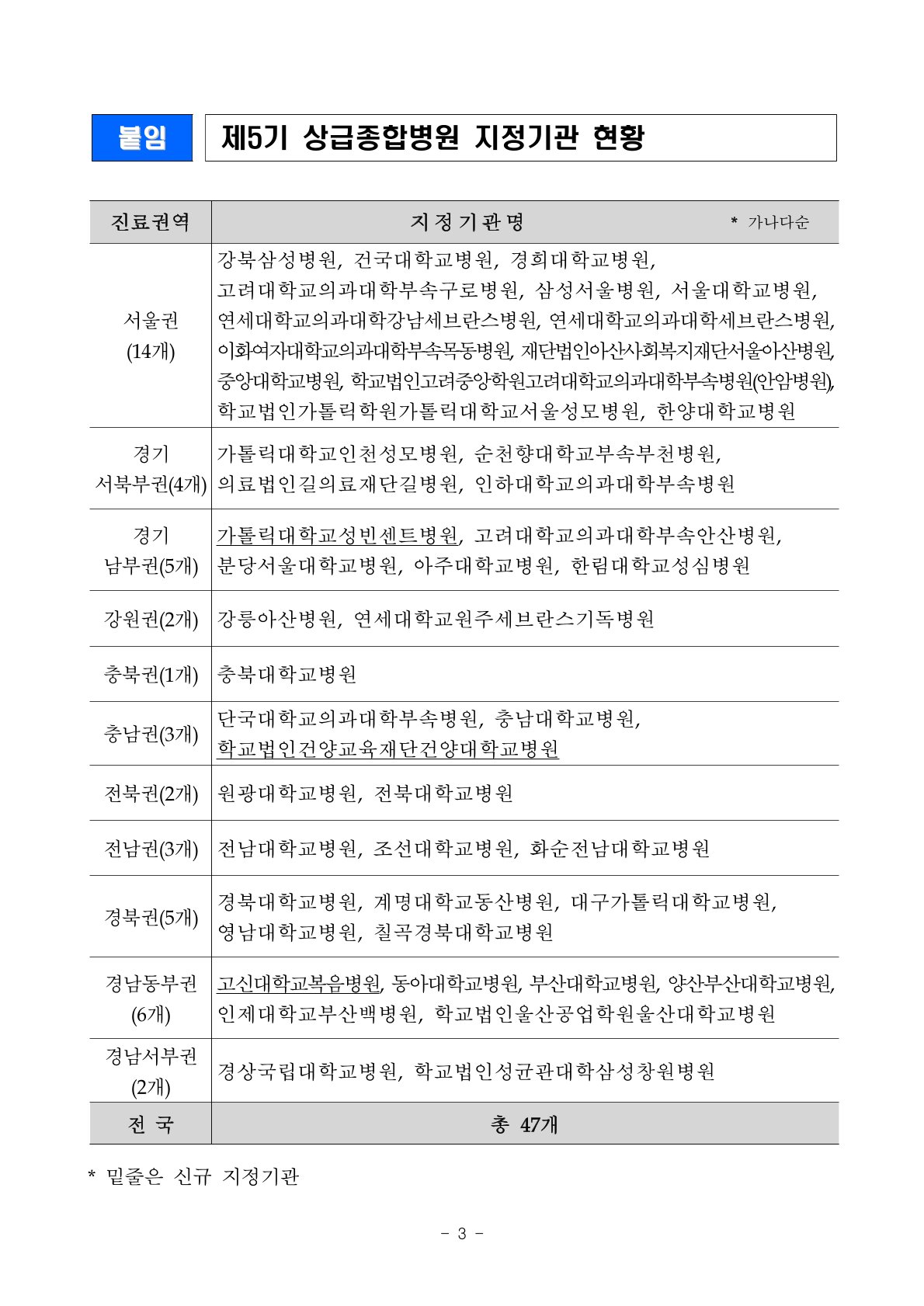2024~2026년 기준 상급종합병원 리스트