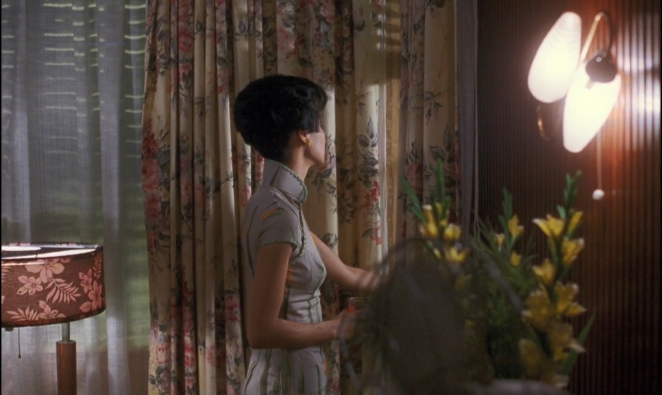 그리고 아름다운 주모완(장만옥)의 아름다운 치파오패션과 화려한 귀걸이 우아한 업스타일의 헤어가 눈길을 사로잡습니다.