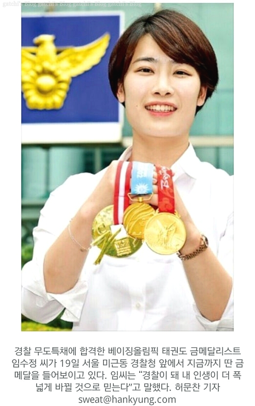 - 임수정 경장: 2008 베이징 올림픽 태권도 금메달리스트 → 2016년 경찰 무도 특채 입문