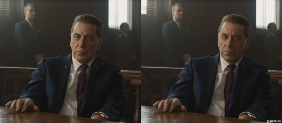 - 로버트 드 니로, 알 파치노의 젊은 시절 모습을 디에이징 기술로 구현했습니다.